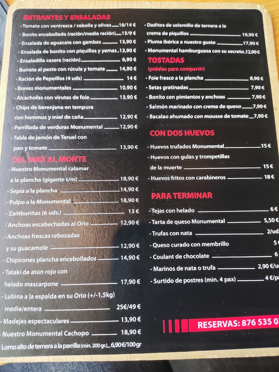 Renowned for its generous portions and high-quality dishes, Monumental Taberna excels in delivering an unforgettable dining experience. Diners rave about the delectable pinchos at the bar, praised for being both affordable and delicious. The trendy atmosphere, complemented by a curated selection of music, creates an inviting ambiance perfect for a casual meal or a night out with friends.